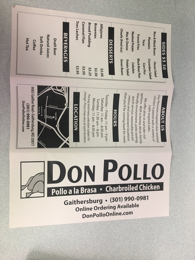 Don Pollo, a Latin American - Peruvian restaurant in Gaithersburg, MD, offers a variety of delicious dishes with fast and friendly service. Customers rave about the juicy and flavorful rotisserie chicken, accompanied by a great selection of sides like yucca, rice, and beans. The modern and inviting ambiance, efficient takeout service, and generous portion sizes make dining at Don Pollo a delightful experience. The menu also features unique items not found at other locations, reflecting a refined and flavorful take on traditional Peruvian cuisine. Cleanliness, excellent customer service, and reasonable prices add to the overall appeal of this restaurant. Whether you're dining in, taking out, or catering for a group, Don Pollo stands out as a top choice for authentic and mouthwatering Peruvian dishes.